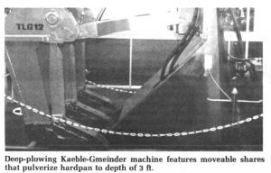 "The hydraulically operated moveable shares break up the soil so that it has more water holding capability, yet standing water drains away quickly, in many cases eliminating the need for drainage systems. The plow also leaves small underground furrows that, when worked transversely across hillsides, hold water like small underground terraces.