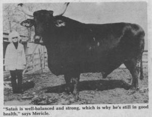 "So far as we know he's the biggest living steer and the second largest ever," says Jack Mericle, Kuna, Idaho, about Satan, a huge 4,600 lb., 16-year old steer that's still going strong on its Kuna, Idaho ranch after retiring from "show business".