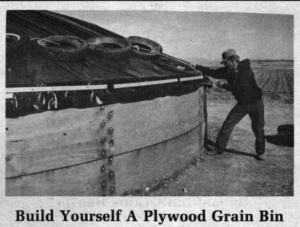 Build yourself a plywood bin CROP STORAGE Grain Storage 10-5-28 Curtis Hemstad, grain farmer near Stanley, N. Dak., has been using plywood bins with plastic covers on his own farm for several years. He willingly passes on what he's learned to FARM SHOW readers who may need extra temporary grain storage.