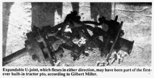 "I am sending along a photo and letter written to a farm magazine in 1961 concerning what might be the first-ever tractor pto built by my father-in-law Harry Knox add his brothers. All three brothers are now deceased and when their family had a farm sale some years ago, this joint, which was part of the pto assembly, was in the iron pile. I rescued it and still have it in my possession. I think it derserves a spot in the Agricultural Hall of Fame," says Gilbert O. Miller, Mitchell, S. Dak.