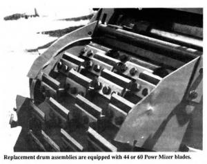 Complete 44-bladeknife assemblies, with new shafts, sell for right at $4,750 (not including shipping), and the 60-blade assemblies for an additional $500. The assembly includes bolts, hardware and all knives, which are pre-set. Two men can install a pre-assembled and balanced drum in four to six hours, says Mammoser.