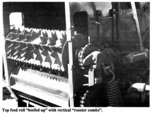 "Beefed Up" Top Feed Roll: To make it more aggressive in moving material though the chopper, Mammoser's firm installs vertical "rooster combs" between the existing horizontal rows. A converted feed roll, with your old roll in exchange, sells for $300.