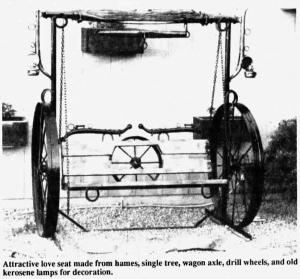 "Memories are made of this," says Olen, who has built a booming business turning old cultivator wheels, plow seats and harness parts into love seats, tables, lamp stands and other furniture that customers buy to decorate living rooms, dens, patios and back yards. It's attractive, functional and great for conversation.