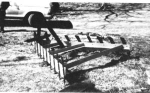Kimbrough has field tested his triangular-shaped harrow - which is outfitted with sloping plow points - for the past 5 years. "It's ideal in rocky ground and around stumps. It'll also function as a pasture renovator by removing some of the teeth and pulling it with about 700 lbs. of added weight. When used to level plowed ground, I leave all 18 teeth in place. By simply turning the harrow over, it can be used as a drag to level ground."