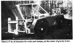 Collins uses a rear-mounted hydraulic winch and cable to skid logs up to 30 in. in diameter. A rear-mounted butt plate protects the rear tires. By removing the plate and installing a dump body he can haul cordwood. "My tractor would work great with a FARMI 3-pt. hitch front-end loader. I haven't done any plowing or cultivating with it, but there's no reason it couldn't be done." Collins says he's looking for investors and manufacturers.