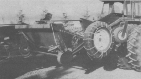 Jim Hermanson and John Kerr, Strathmore, Alta., got tired of turning their combine header back by hand to unplug the throat so they built a ground-driven "reverser" to do the job for them.