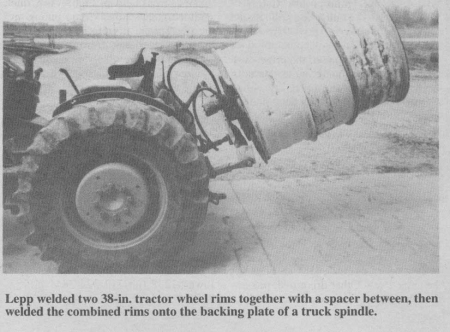 Old tractor wheel rims can be used to make a low-cost 3-pt. cement mixer, says Dave Lepp, Niagara On The Lake, Ontario.