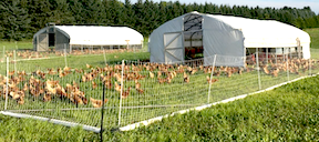 “The design would work equally well with any large, skid-style coop, such as the Mobile Range Coop or a do-it-yourself coop,” says Gutschenritter. “We use it with laying hens, but it has been used with all types of poultry, including broilers and turkeys.”