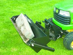 Figuring there had to be a better way, he went looking for a front-end loader or scoop to mount on his Deere X475 lawn tractor.