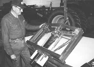 Litchfield also rigged up a large rear view mirror that makes it easier to hook up implements to the hitch. The mirror is bolted to a pair of strap irons that are clamped to the pickup's tailgate.