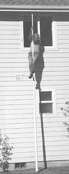 "It takes less than 2 lbs. of pull to drop the pole down so even kids can use it," says Moore. "The pole is positioned about 12 in. from the window so you don't have to worry that you'll miss it and fall. The larger, heavier end section is at the bottom of the pole so it drops fast. Grabbing the small end first allows even a child to get a firm grip on it. As you descend, the pole gets larger which naturally slows you down. It works much better than rope and chain ladders which are cumbersome and have to be stored under a bed or in-side a closet where they can be hard to find.