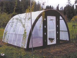 "This is the best little home-built greenhouse around," says Harry Day, Spokane, Wash. "What makes the 12 by 12-ft. structure different is the strength of wood and the way I attach the 20-ft. long, 3/4-in. dia. pvc 'hoops' to the 2 by 6's that run down each side.
