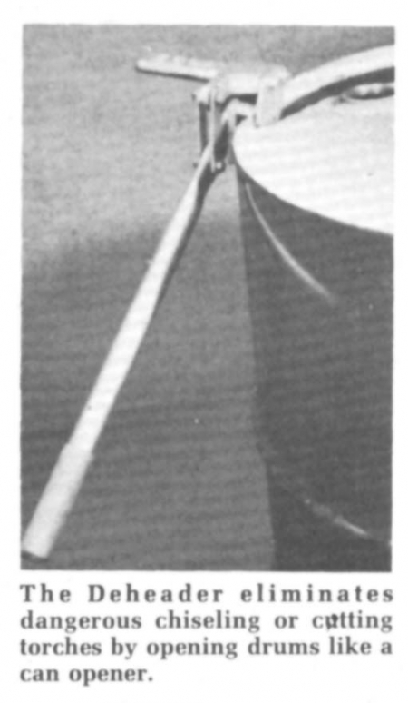 Now, thanks to the "Drum Deheader" from Weil, you can remove the end of oil and chemical drums almost as easily as opening a can of soup with a regular can opener.